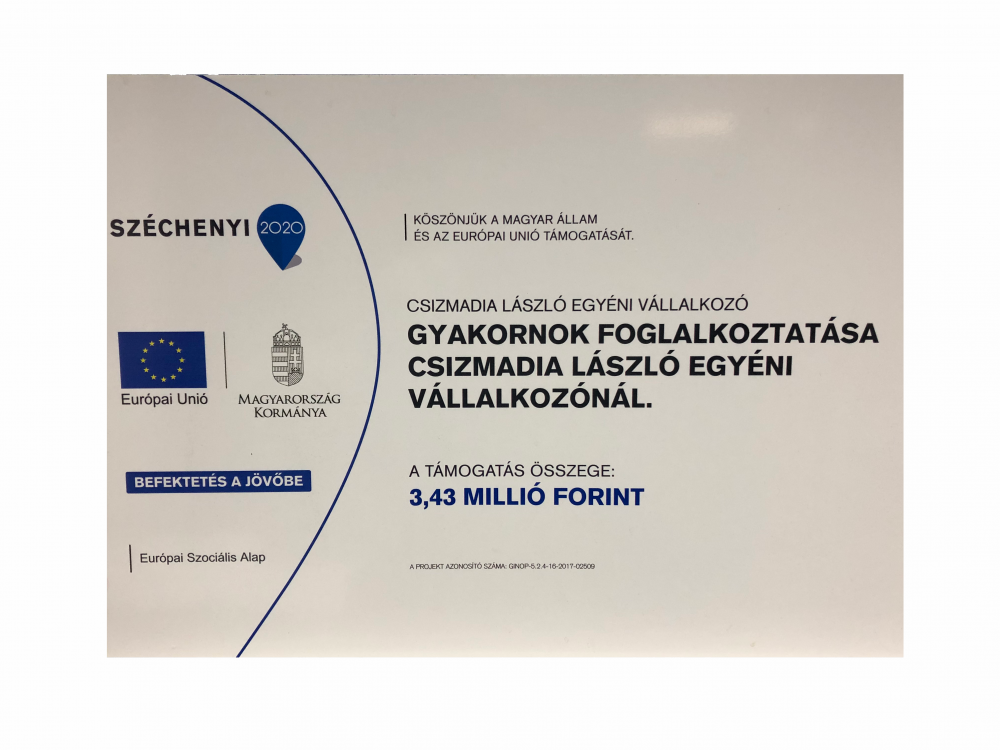 A projekt címe: Gyakornok foglalkoztatása Csizmadia László egyéni vállalkozónál.
