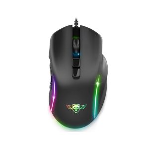 Gamer egér - vezetékes, optikai, 8000DPI, 6 gomb, rgb háttérvilágítás, 2,1 m hosszú kábel, USB, szimmetrikus, színe: fekete